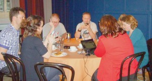 De ontmoeting van zo’n 15 medebloggers was geweldig, maar als je met iemand aan tafel praat, kun je de stream van enkele berichtjes per minuut niet volgen. Het lukt dan helemaal niet om inhoudelijk op die berichtjes te reageren. Kortom, het idee is leuker dan de werkelijkheid.